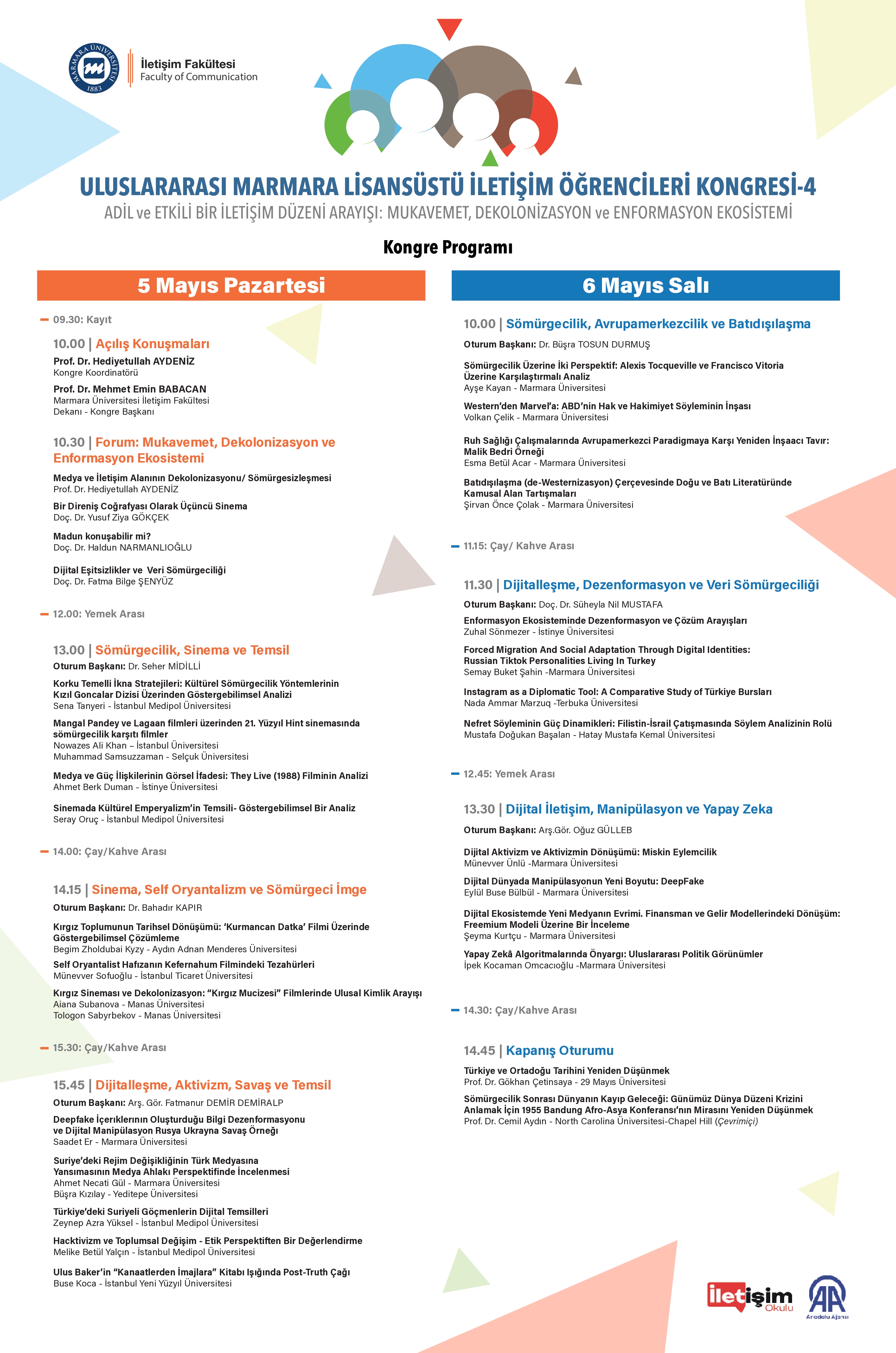 Buradan hareketle Marmara Üniversitesi İletişim Fakültesi’nin medya ve iletişim çalışmalarına lisans üstü seviyesinde katkı sağlamak amacıyla düzenlediği Uluslararası Marmara Lisansüstü İletişim Öğrencileri Kongresi, 5 yıl aradan sonra “Adil ve Etkili Bir İletişim Düzeni Arayışı: Mukavemet, Dekolonizasyon ve Enformasyon Ekosistemi” teması ile 5-6 Mayıs 2025’te yeniden düzenleniyor.
